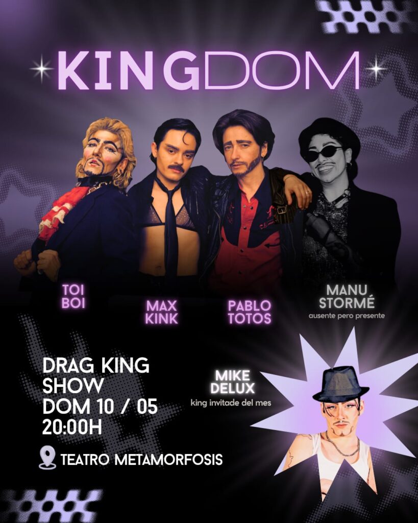 Domingo 10 de mayo volvemos con nuestra cita mensual KINGDOM (@kingdom_dragkings), el espectáculo interactivo de drag kings donde se mezcla la masculinidrag con hotness, risas y actitud