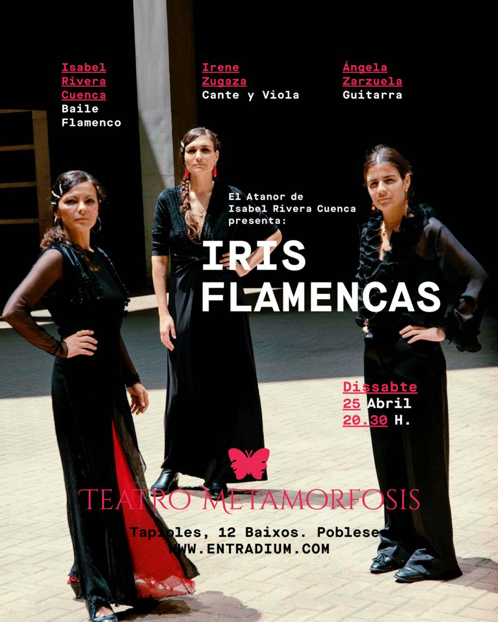 Iris Flamencas es una creación artística flamenca integrada por mujeres: IRENE ZUGAZA (cantante y viola), ISABEL RIVERA (baile) y ANGELA ZARZUELA (guitarra). Desde Barcelona, Madrid y Cádiz, y con una...